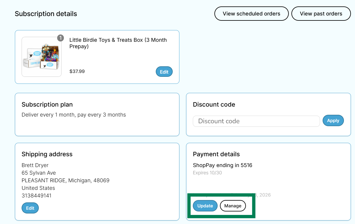 You can update your payment method in your customer portal.